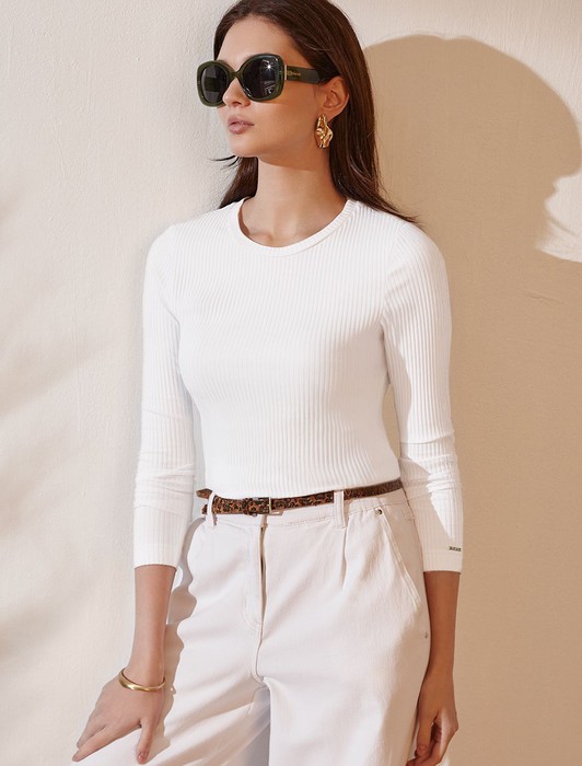 Состав: 95%Хлопок 5%ПУ Плотность: 230 Г/м2Джемпер с круглым вырезом выполнен из фактурного трикотажа в широкий рубчик. Модель идеально сидит по фигуре не сковывая движения. Хлопковый трикотаж поддерживает оптимальную температуру тела, поэтому в изделии будет комфортно в течении всего дня. Наличие эластана в составе гарантирует формоустойчивости. Базовая модель впишется в любой гардероб.