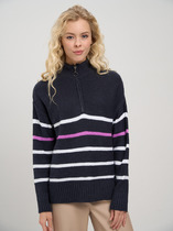 Джемпер женский прямого силуэта «летучая мышь» с округлой горловиной и спущенной линией плеча. По переду в области груди расположена авторская вышивка с пришивным декором. Рукав двухшовный 3/4 соединен с отрезным бочком полочки и спинки.