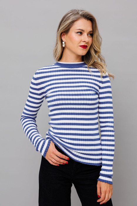 Универсальный джемпер из тонкой хлопковой пряжи. Он идеально прилегает к телу, позволяя носить его в прохладные дни как базовый слой с жакетами, кардиганами или пальто. Такая пряжа мягко греет и совсем не колется, а благодаря обработке волокон специальным составом джемпер долго не потеряет форму и не сядет при стирке. Благодаря полосатой расцветке - любой образ станет интереснее. Длина - 58 см.
