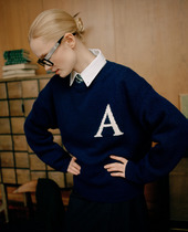 Джемпер свободного кроя с интарсией "А", сине-молочный