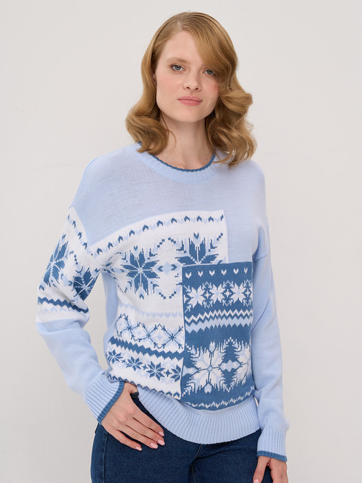 Джемпер NewVay 9232-94031 голубой/зимнее утро/белый