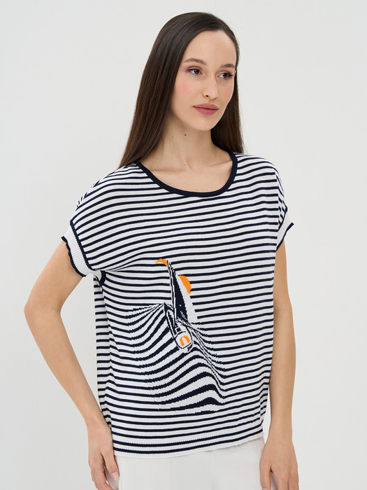Джемпер NewVay 9241-94129 белый/м.синий/апельсин