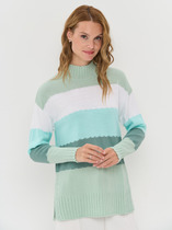 Совместные покупки Магнитогорск Женская одежда Джемперы, свитеры, водолазки — Джемпер NewVay 9242-94057 малахит/грозовое небо/ментол/белый