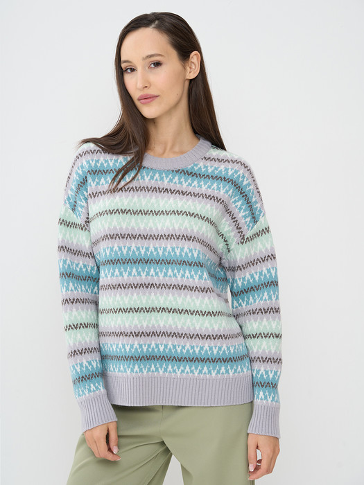 Джемпер NewVay 9242-94106 туман/молоко/грозовое небо/т.бежевый/малахит