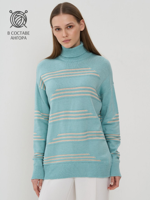 Джемпер NewVay 9242-94157 шалфей/бежевый меланж