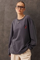 Джемпер-кейп прямого свободного силуэта. Горловина с цельнокроеным воротником-стойкой. Рукав втачной широкий, от линии локтя до запястья есть дополнительное отверстие для рук. Декорирован цветком из контрастной ткани.