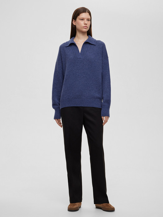 Джемпер-поло свободного кроя из кашемира и шерсти, синий
