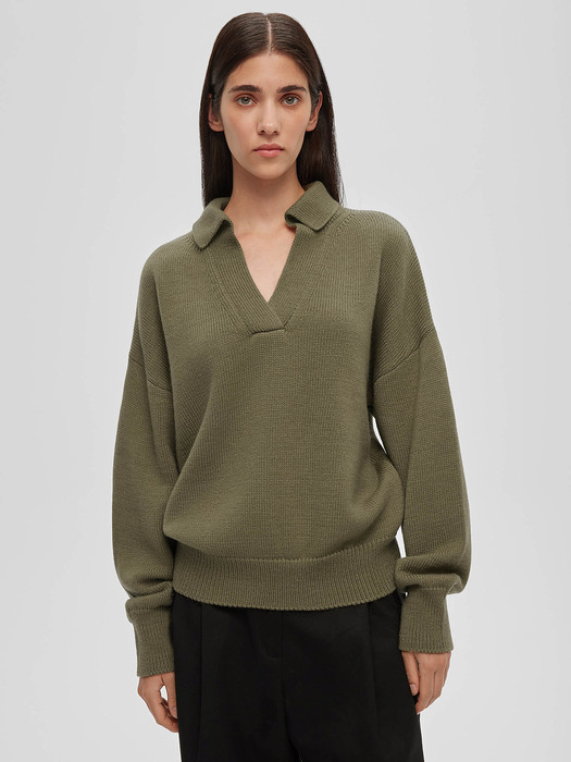 Джемпер-поло свободного кроя с отложным воротником — одна из ключевых моделей Aim Clo, к которой наши клиенты возвращаются из сезона в сезон. Спущенная линия плеча и V-образный вырез формируют мягкий, открытый силуэт и сохраняют ощущение свободы в движении.