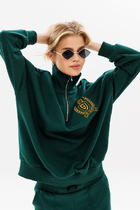 Джемпер из хлопковой трикотажной ткани. По переду расположен принт. Спинка со средним швом. Рукав одношовный, спущенный. Вырез горловины-круглый, обработан бейкой.