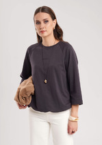 21.04 Vilatte Джемпер с цельнокроеным воротом из премиального хлопка D49.113 чер