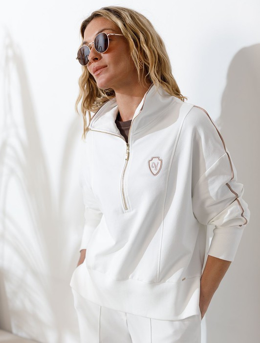 Джемпер с воротом на молнии и лампасами из футера двухнитки с эластаном