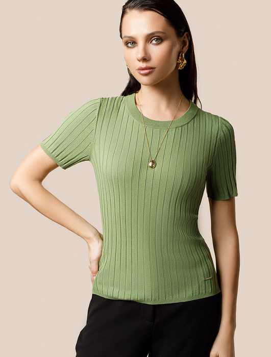 Джемпер тонкой вязки из вискозы с нейлоном. Модель с круглым вырезом прилегающего силуэта. Мягкая очень приятная к коже пряжа хорошо держит форму и гарантирует комфорт во время носки в течение всего дня. Изделие дополнено фирменным металлическим логотипом бренда.
