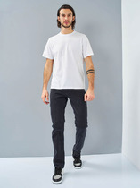 Мужские модные джинсы с пятью карманами. Посадка Regular fit (полуоблегающие по бедру), высокая талия. Застежка на молнии. Выполнены из слабоэластичной ткани denim comfort stretch. Средняя стирка с потёртостями и "усами" спереди и потёртостями сзади.