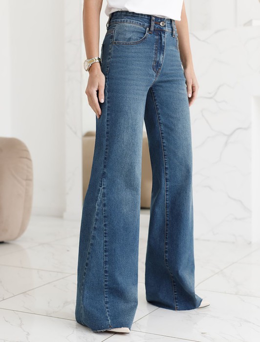 Джинсы клеш от колена из эластичного денима
