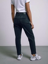 Джинсы О-образные от бедра, укороченные, на   поясе  со шлевками. Высокая посадка. Спереди и сзади вертикальные подрезы, которые конструктивно делают брюки более объемными.  Функциональные карманы  спереди. На задних половинках накладные карманы и классическая фигурная кокетка. Эти джинсы отлично сочетаются с футболками “овер”, прямыми топами, свободными рубахами и блузами, а так же прекрасно дополняют образ в сочетании со свободным жакетом в стиле Casual.