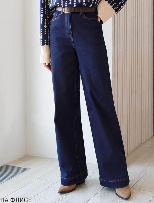 Джинсы-трубы из эластичного денима на флисе