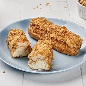 Этот десерт сочетает в себе заварной полуфабрикат приготовленный на молоке, два вида заварного крема на основе натуральных сливок, и
