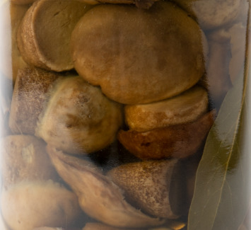 Состав: грибы, очищенная вода из артезианской скважины, соль, перец душистый, чеснок, семена горчицы, укроп, лимонная кислота, перец стручковый.