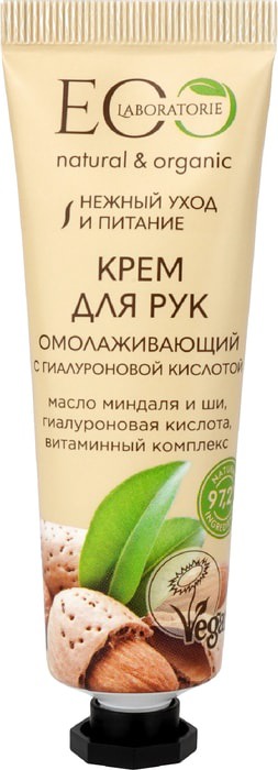 Крем для рук EO Laboratorie® Омолаживающий с гиалуроновой кислотой и натуральными питательными ингредиентами восстанавливает кожу, придает ей упругость и гладкость, а также насыщает клетки кожи влагой, тем самым активирует процессы ее омоложения. Защищает от воздействия неблагоприятных факторов: солнца, ветра, высоких и низких температур.