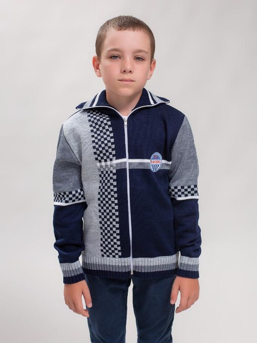 Совместные покупки Магнитогорск Детская одежда Кофты, кардиганы — ESENIA Кофта плотной вязки для мальчика на молнии Шахматы - Джинс