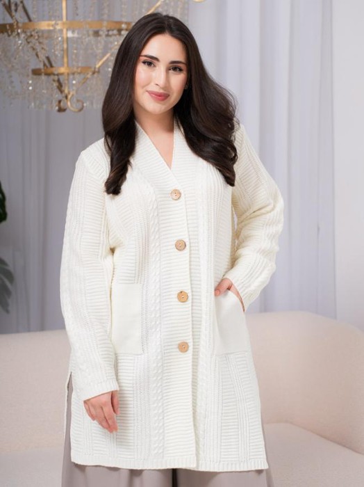 ESENIA Кардиган женский полушерстяной удлиненный с косами - Молоко, Сирень