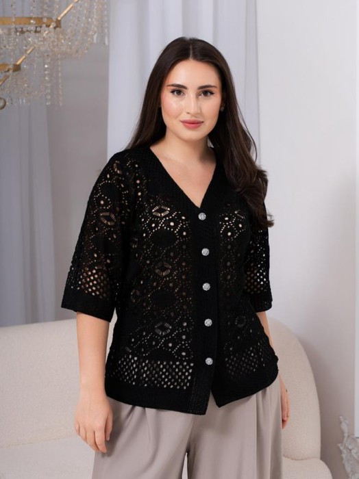 ESENIA Кофта женская летняя Ажур - Чёрный