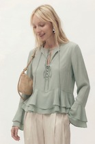 27.03 Vilatte Укороченная блузка с рукавами буфами и с кулиской по низу из элас