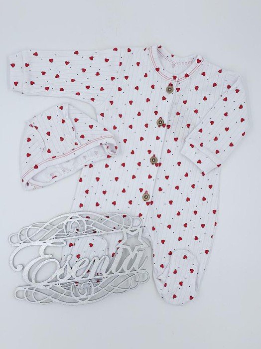 ESENIA Комплект для малышей из 100% хлопка (комбинезон+Шапочка) №2 с сердечками