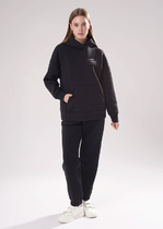 Модель толстовки с небольшим разрезом по бокам. Спинка немного длиннее, чем передняя часть