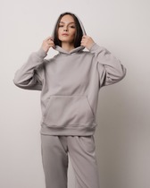Модель толстовки с небольшим разрезом по бокам. Спинка немного длиннее, чем передняя часть
