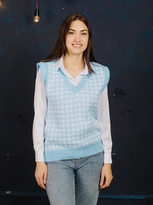 Совместные покупки Магнитогорск Женская одежда Жилеты — ESENIA Жилет женский - Голубой / Белый
