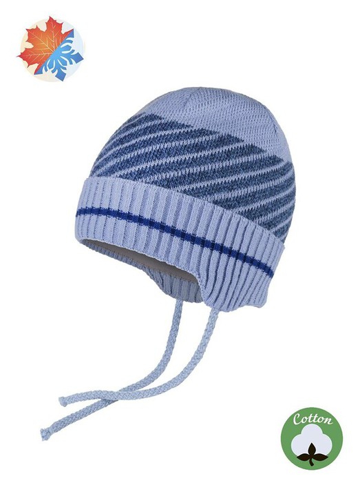 Теплая шапочка с хлопковой подкладкой, завязками и удобными наушниками для защиты от холода и ветра. шапочка выглядит стильно благодаря оригинальному переплетению.представлена в двух цветовых вариантах: синий и серый.