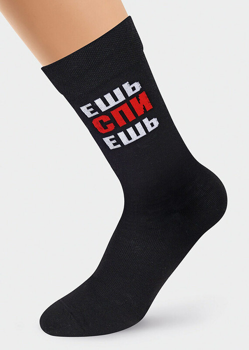 стильные мужские носки с шуточной надписью ""ешь спи ешь""