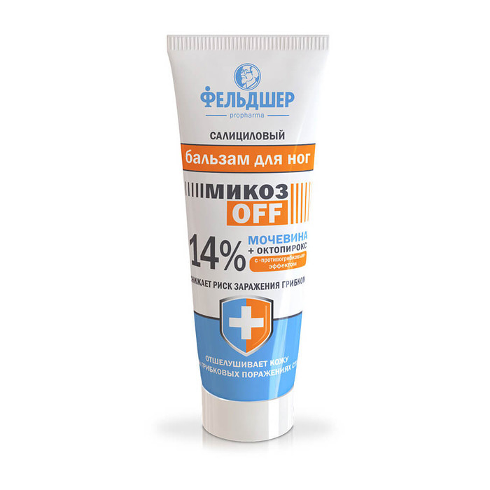 Рекомендован для ежедневного ухода за огрубевшей кожей стоп при грибковых поражениях. В состав бальзама введены: Мочевина в высокой концентрации 14% и Салициловая кислотаразмягчают и отшелушивают огрубевшую кожу. Октопирокс снижает риск заражения кожи стоп. Является эффективной профилактикой, препятствует утолщению рогового слоя кожи