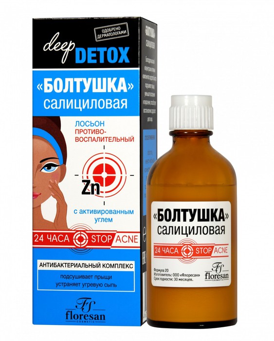 Салициловая болтушка – одно из лучших средств для кожи, склонной к акне и является хорошей профилактикой от появления прыщей. Эффективно очищает, снимает воспаления и угревую сыпь.