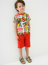 Футболка для девочки из трикотажного полотна "кулирка" с приспущенным плечом, втачными короткими рукавами, горловиной овальной формы, обработанной втачной планкой и принтом на полочке, выполненным в технике шелкографии. По шву втачивания планки в горловину настрочена отделочная строчка.