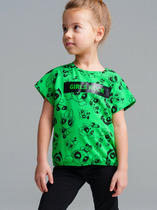 Футболка оверсайз для мальчика из трикотажного полотна: хлопкового с добавлением лайкры. Модель с принтом на переде, спущенной линией плеч, рукавами длиной до локтя.