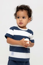 Футболка оверсайз для мальчика из трикотажного полотна: хлопкового с добавлением лайкры. Модель с принтом на переде, спущенной линией плеч, рукавами длиной до локтя.