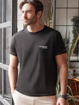 Базовая однотонная мужская футболка прямого силуэта без принта. Выполнена из трикотажного полотна: хлопкового с добавлением лайкры. Горловина округлой формы с усилителем горловины спинки.