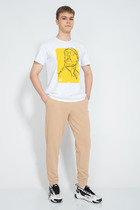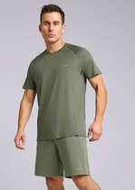 Футболка мужская из трикотажного полотна "кулирка-варенка", с короткими рукавами покроя "реглан", горловиной овальной формы, обработанной втачной планкой, и принтом в центре детали переда, выполненным в технике шелкографии. По швам реглана и горловине настрочены отделочные строчки.
