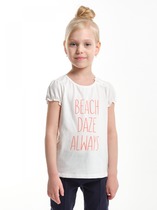Футболка из меланжевого трикотажа, декорированная зеркальным принтом в виде зебры с бахромой по бокам. Свободный крой, круглый вырез горловины, декоративный вырез на спинке снизу.На ребенке представлен размер 110:- Ширина изделия по линии груди 33 см- Ширина по низу изделия 35 см- Длина изделия 47,5 смРазница между размерами составляет 1,5 см.