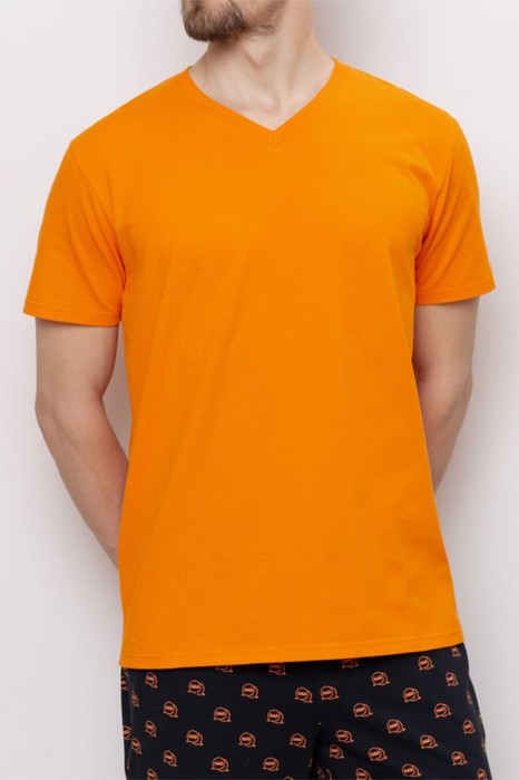 Футболка свободного прилегания с коротким рукавом и V–образным вырезом горловины. Модель дополнит образ к шортам и брюкам данной коллекции, а так же любым поясным изделиям из личного гардероба.