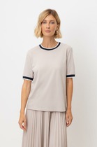 Футболка прямого свободного кроя, выполнена из трикотажного полотна молочного цвета. Характеристика: прямой крой, овальная горловина. Рукав спущен. Спинка цельнокраеная, по переду напечатан принт. Длина спинки 68см, длина рукава от края горловины 41см.