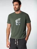 Мужская футболка с короткими рукавами с манжетами. Спереди принт в виде изображения с надписью.
