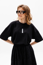 Джемпер выполнен из трикотажного полотна, прямого покроя, длиной до линии бедер. Перед и спинка цельные. Горловина округлой формы. Плечевой шов спущен. Рукав одношовный, длиной до линии локтя. Перед декорирован принтом.