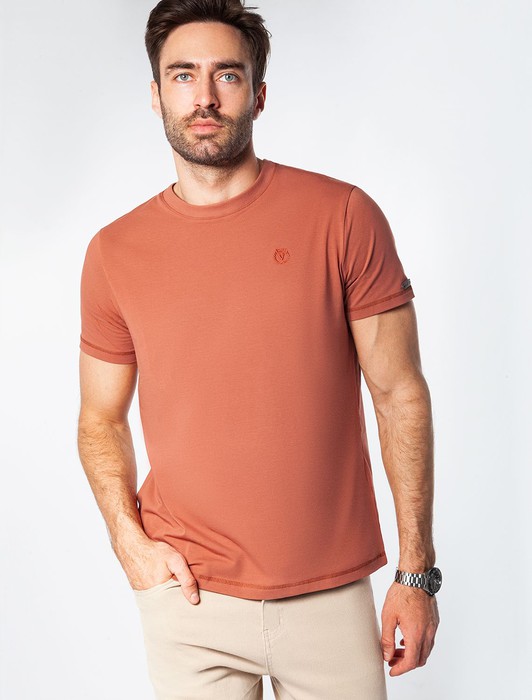 Однотонная футболка выполнена в минималистичном стиле, дополнена аккуратной вышивкой на груди в виде буквы V в тон изделия, а так нашивкой на рукаве из эко-кожи с логотипом VILATTE. Подходит как классический вариант для работы в офисе под пиджак, так и для повседневной носки или занятий спортом. Мягкая ткань приятна к телу, не вызывает дискомфорта и идеально подходит для дома или летних прогулок благодаря короткому рукаву.