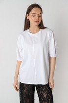 Ткань: кулирка. Состав: 100% хлопок.Отличие модели "Лилия" от всех остальных - окантованная горловина, подшитый рукав и подол. Принт "3 розы" отлично смотрится на серой ткани благодаря нежным цветам и блесткам.