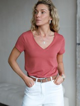 09.04 Vilatte Базовая футболка из премиального хлопка с V образным вырезом D49.