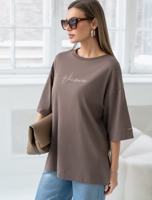 Совместные покупки Магнитогорск Женская одежда Футболки — Футболка оверсайз с принтом стразами из премиального хлопка с эластаном