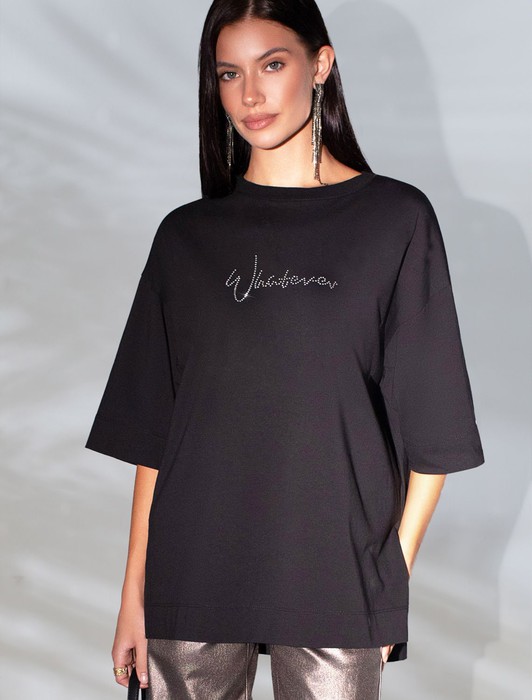 — Футболка оверсайз с принтом стразами из премиального хлопка с эластаном